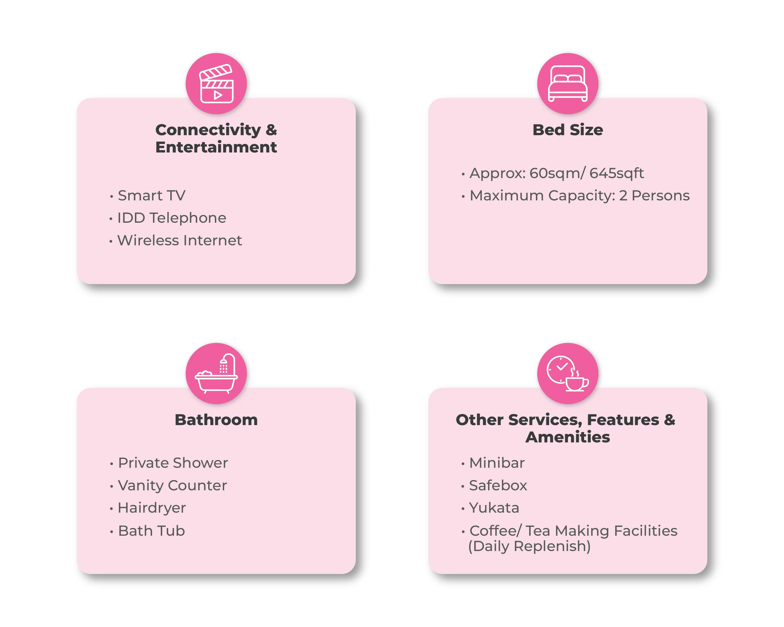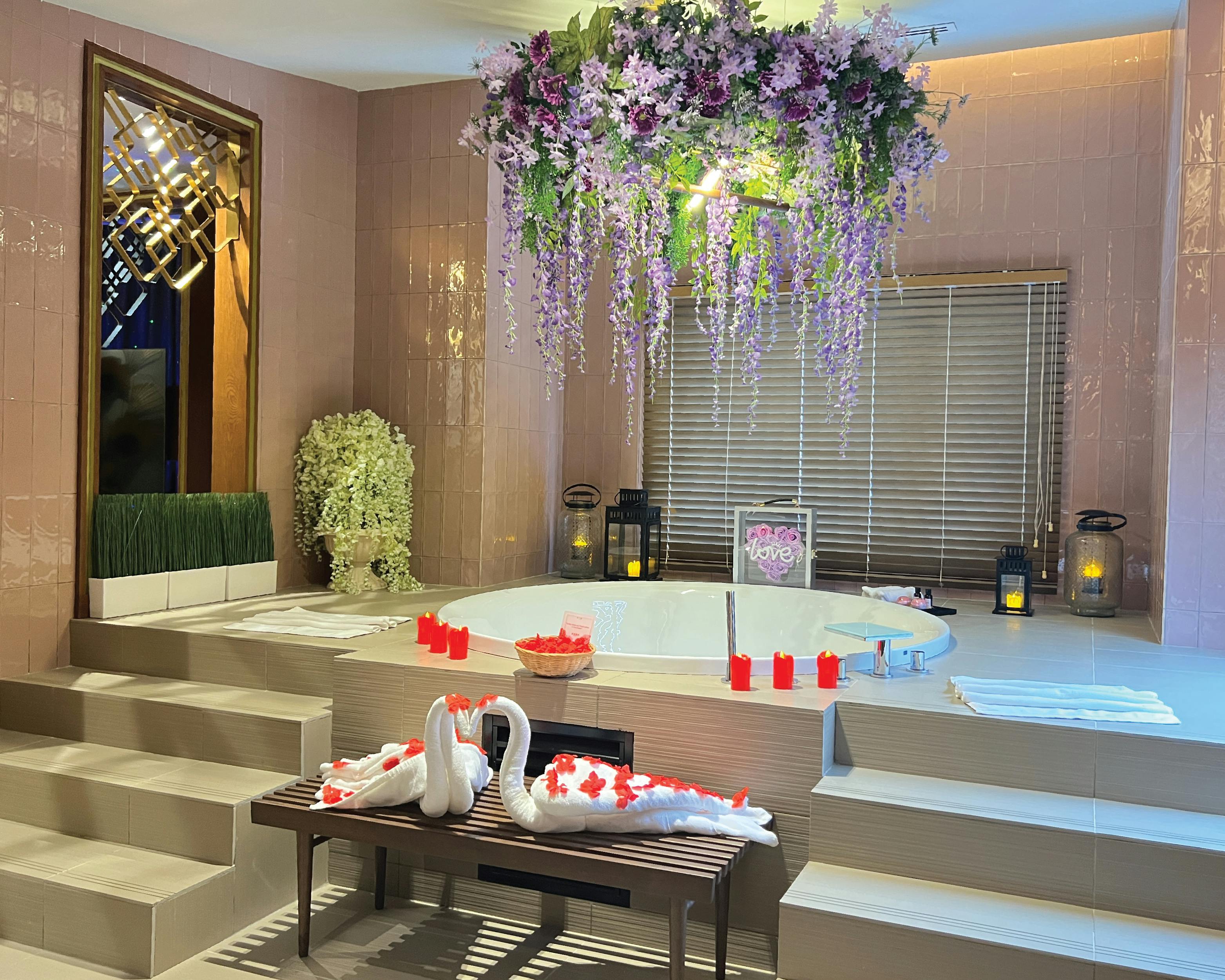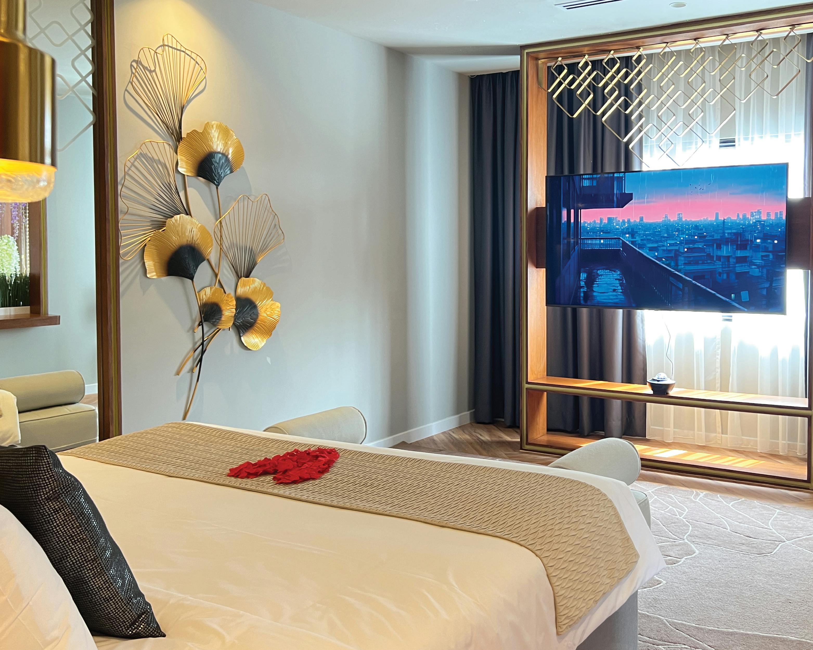 Stepping into the Love Nest suite as if you had entered another place and time. This specially curated room are designed in a warm and opulent setting with a Romantic Oriental concept, houses a King bed, with 10 inch mattresses. Tailor made for our couples wanting a little loving and alone time. The room has natural light, timber flooring, powerful rain shower,soft sheets, bespoke amenities, black out curtains, bedroom slippers, bathrobes, fridge, hairdryer, safe, air conditioning, reusable water bottles, coffee/tea facility,Smart TV, and The Largest Luxury bathtub in Town.