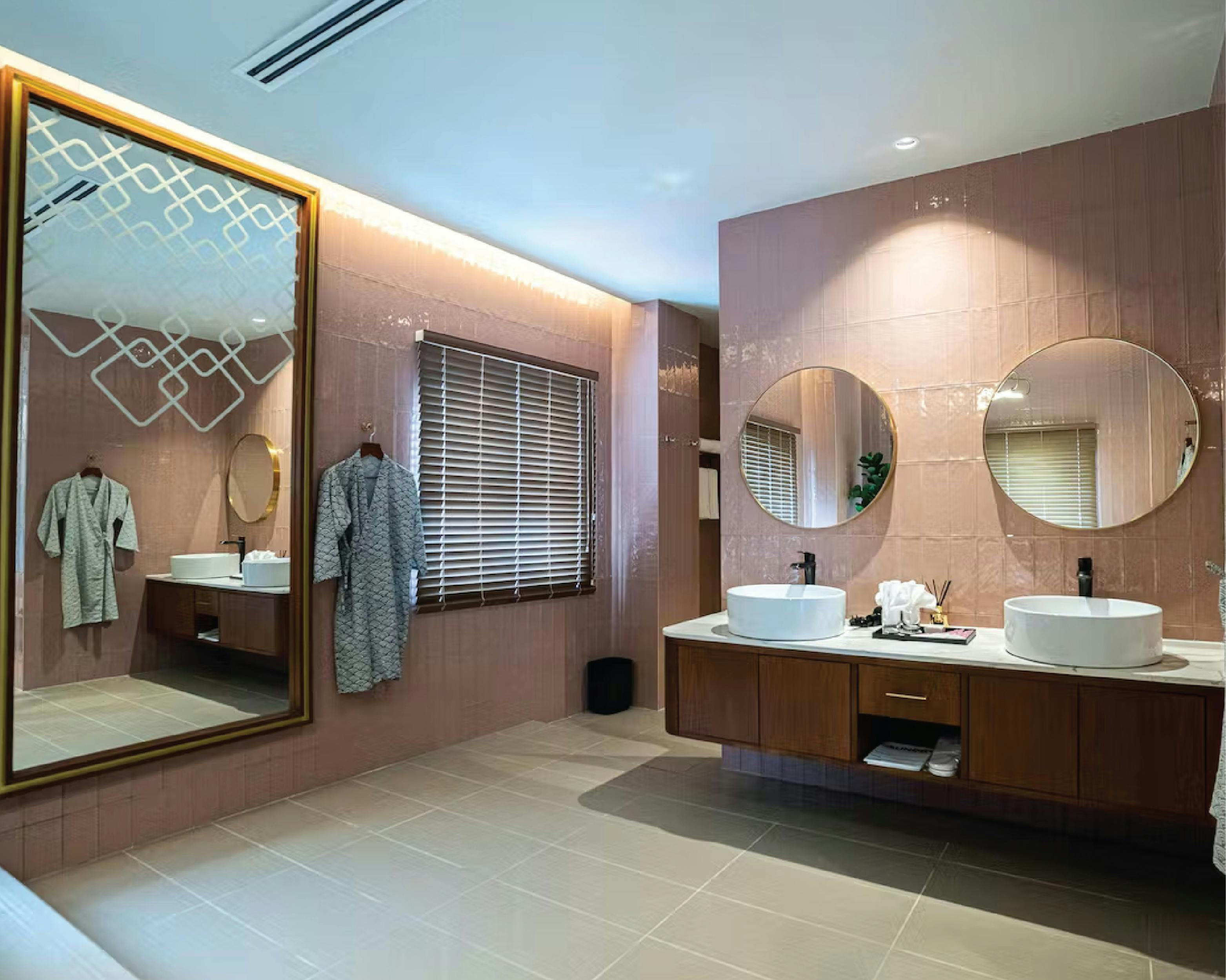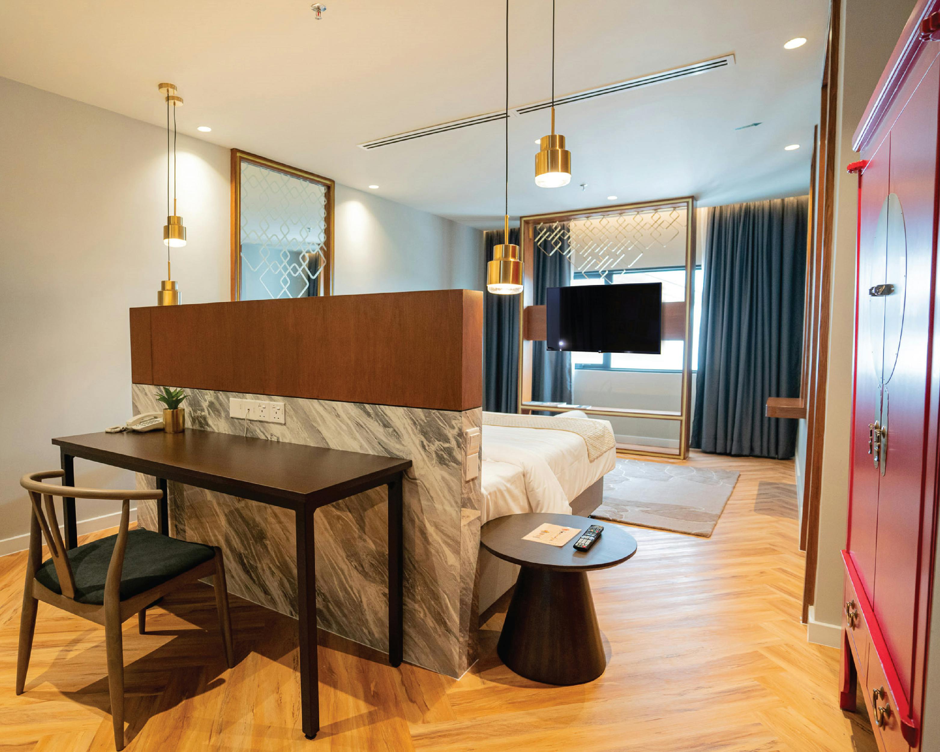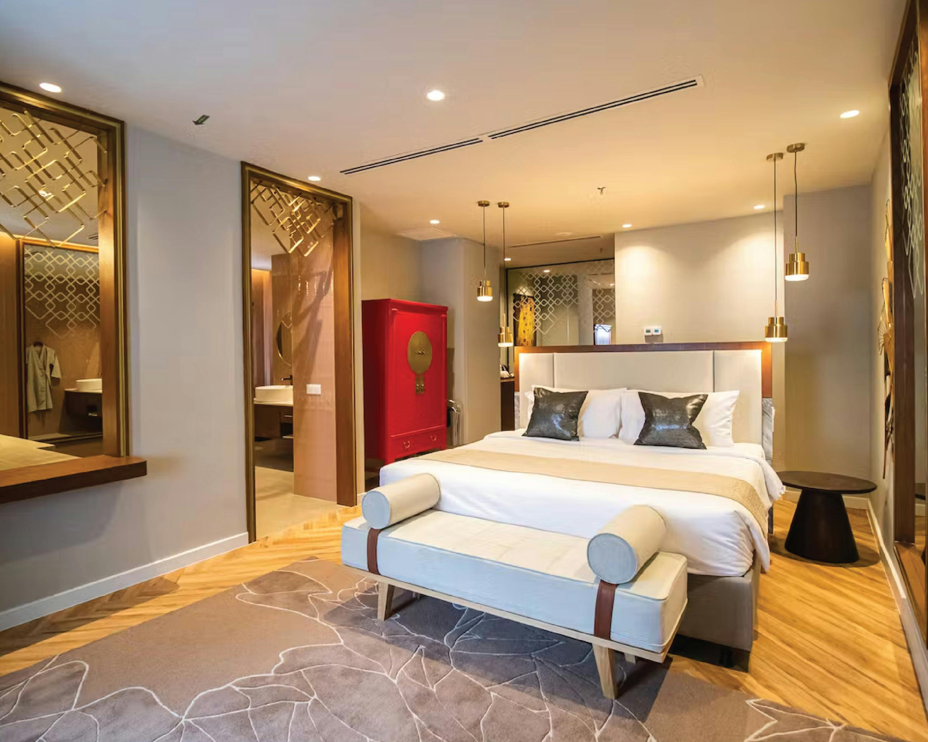 Stepping into the Love Nest suite as if you had entered another place and time. This specially curated room are designed in a warm and opulent setting with a Romantic Oriental concept, houses a King bed, with 10 inch mattresses. Tailor made for our couples wanting a little loving and alone time. The room has natural light, timber flooring, powerful rain shower,soft sheets, bespoke amenities, black out curtains, bedroom slippers, bathrobes, fridge, hairdryer, safe, air conditioning, reusable water bottles, coffee/tea facility,Smart TV, and The Largest Luxury bathtub in Town.