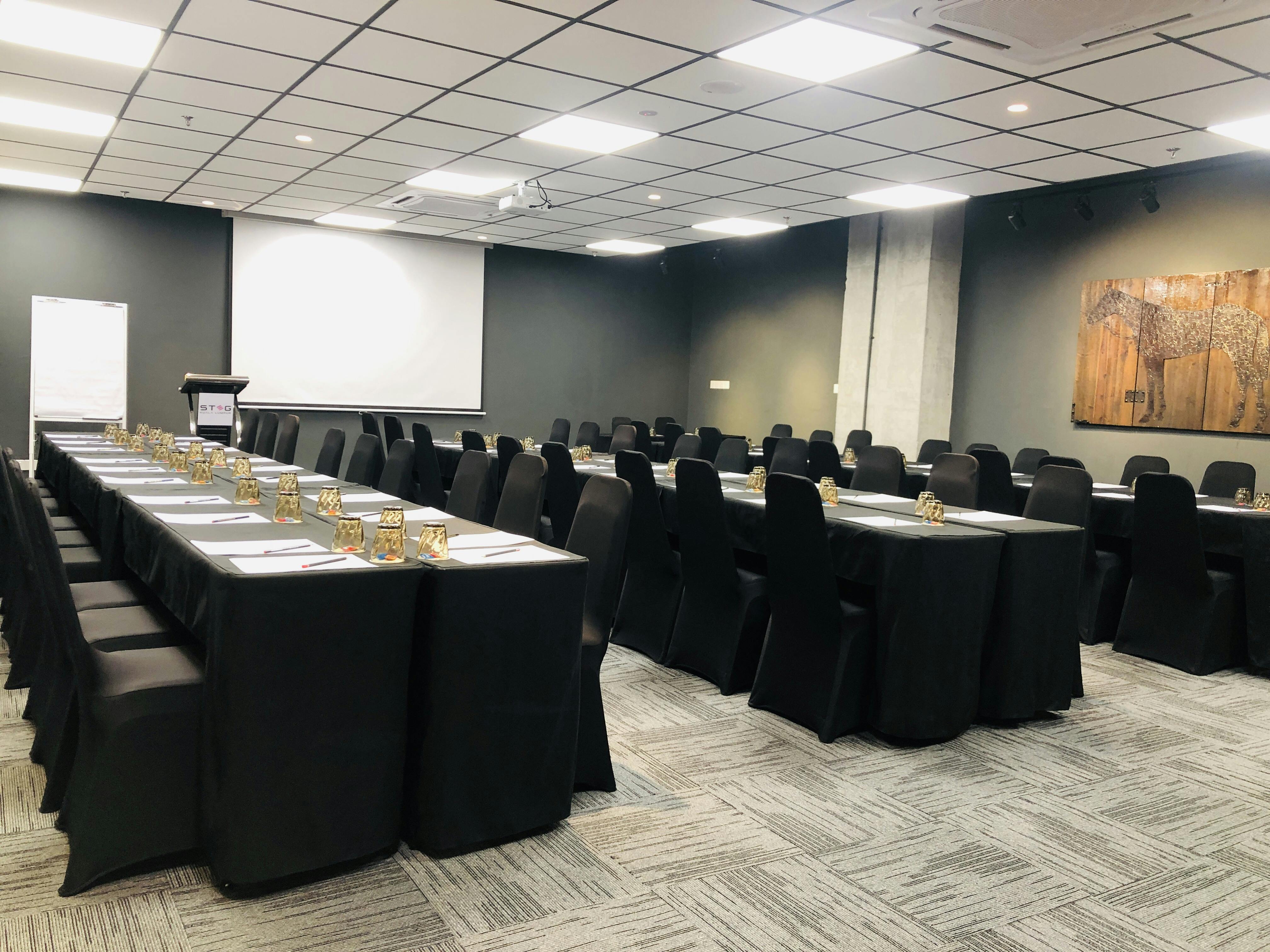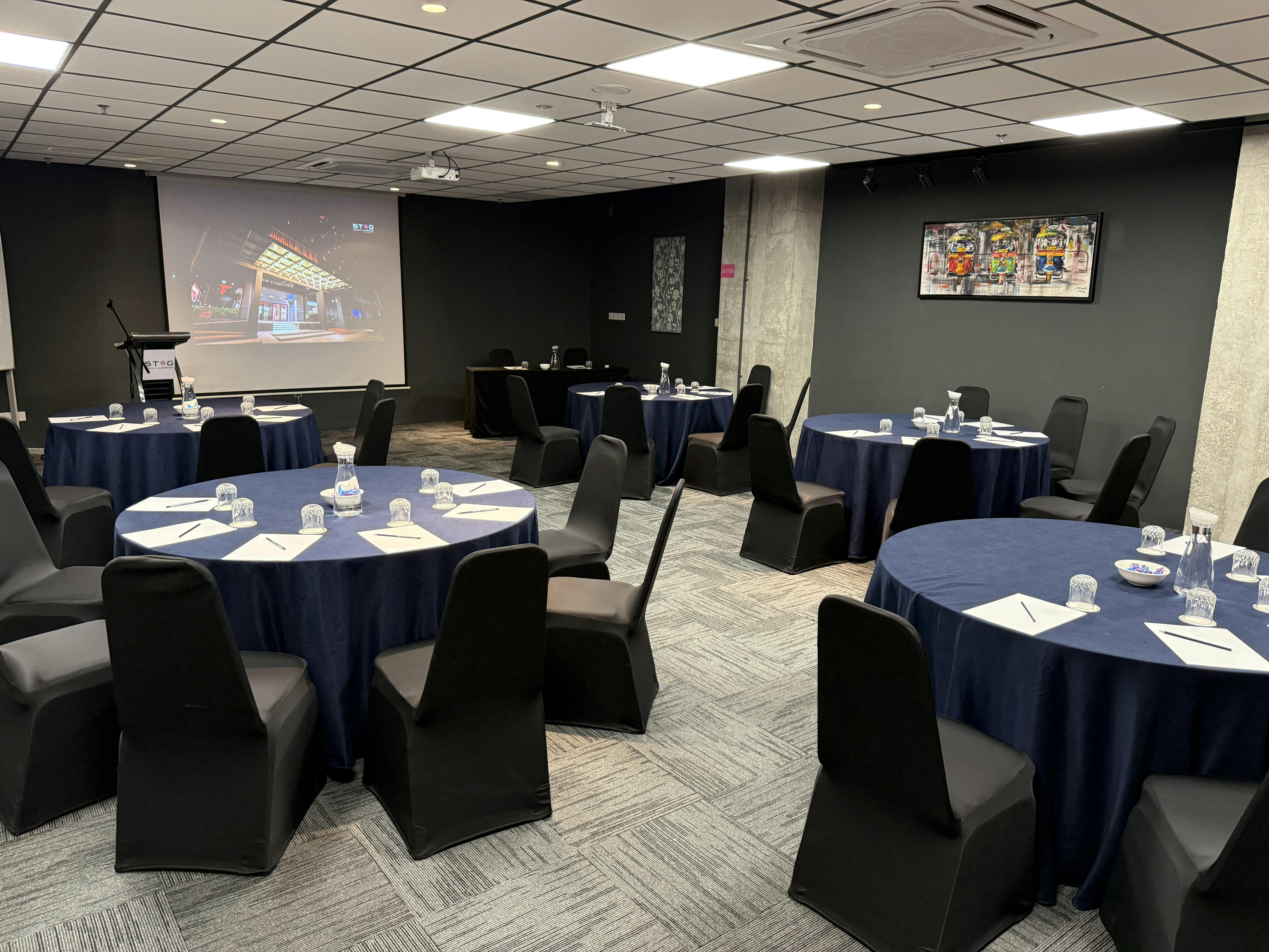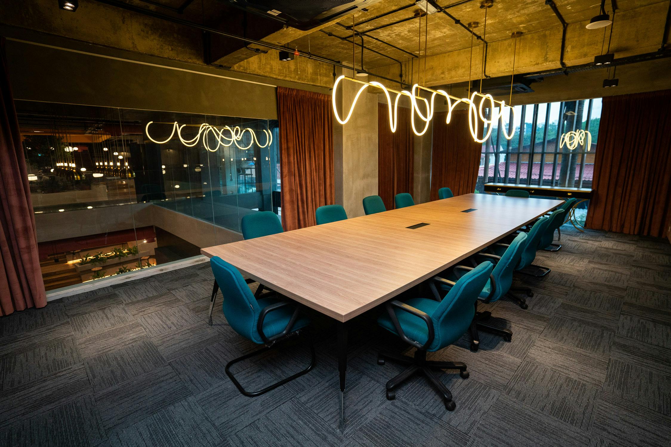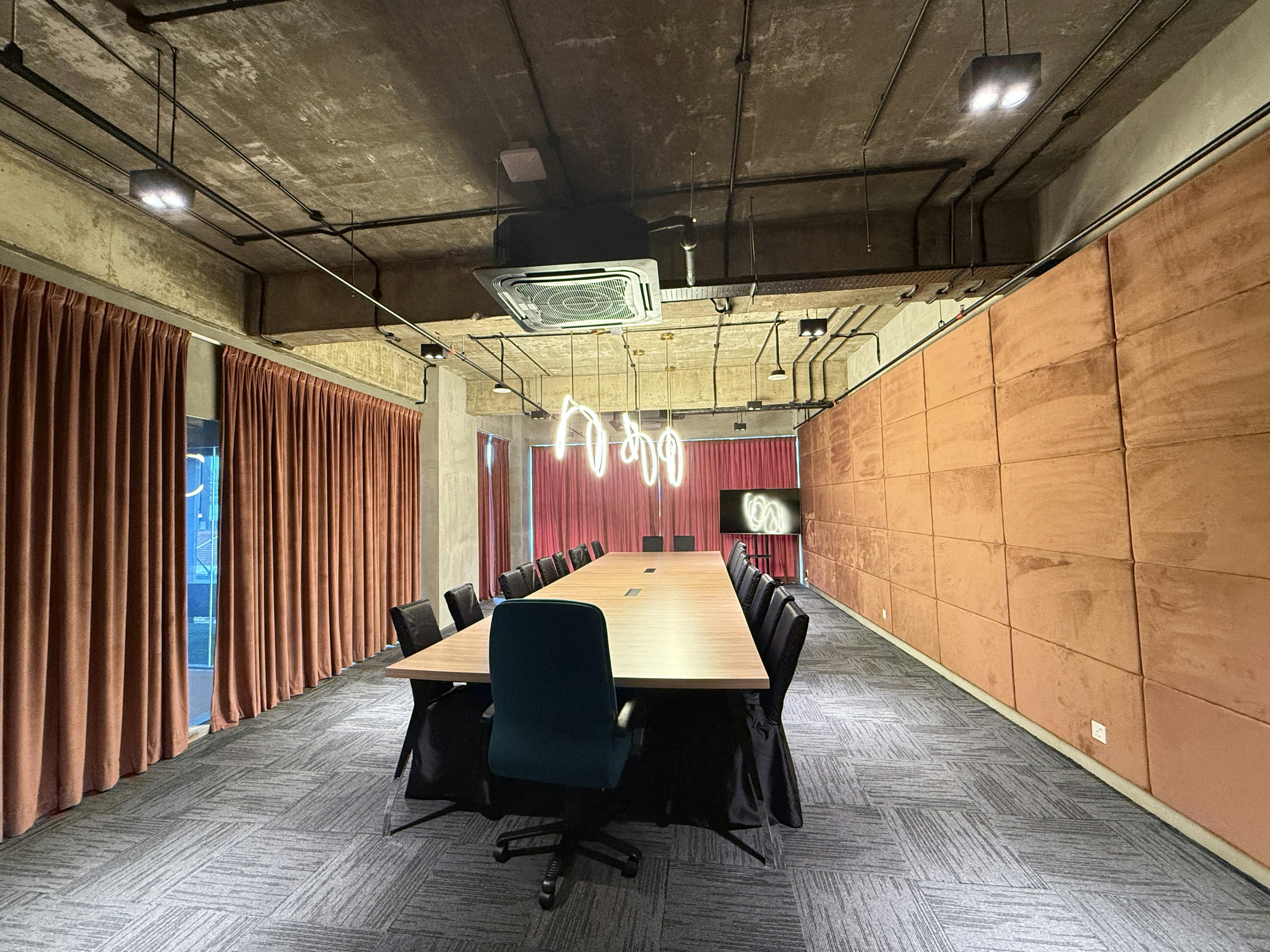 一處設計雅緻、氛圍沉穩的會議空間,適合進行專注而私密的討論,最多可容納20位與會者。