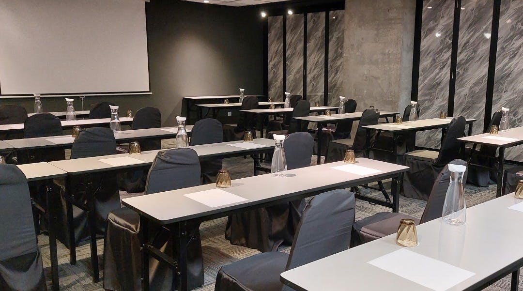 各會議室面積約 63–81 平方公尺,可依不同座位配置彈性調整人數。採劇院式座位時,單一空間最多可容納約60–80位與會者;另可依活動性質選擇 課桌式、圓桌式、董事會式或 U 型座位配置,滿足多元會議與培訓需求。